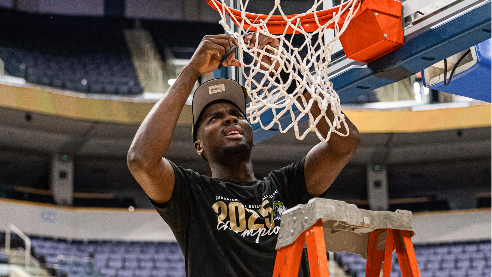Finally, he’s able to leave the locker-room area, traverse back across the Toronto Pan Am Sports Centre court, climb up the stands and open the door onto the concourse level.